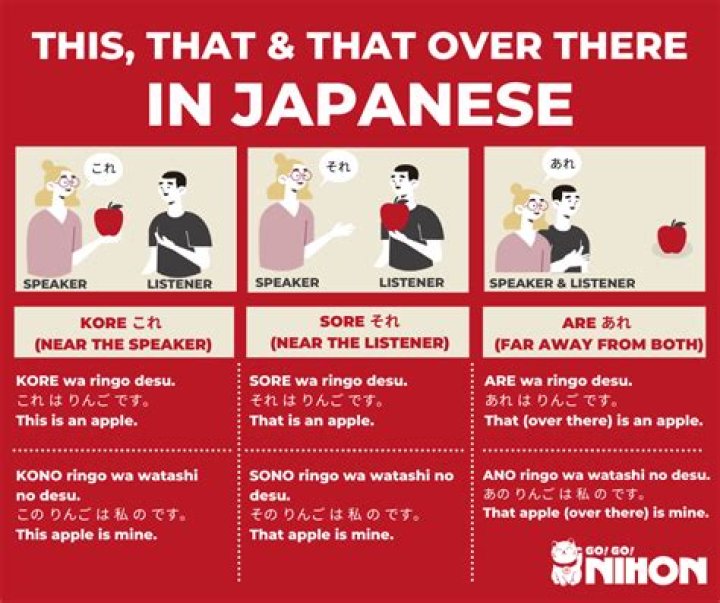 In Japanese, there are ways to say, 'this, that and that over there' This – kore (これ). Refers to things that are close to the speaker. That – sore (それ). Refers to things that are close to the person you are talking to.What is difference between Kore and Kono?