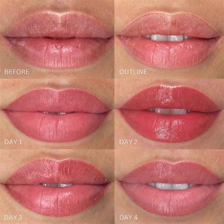 The swelling should go down around 2 days after your lip blushing tattoo treatment. By the 3-day mark, the lip blush hue should get a bit darker than it was right after the procedure. During this time, it is crucial to continue cleansing and moisturizing the area twice a day.Can you kiss after lip blush?