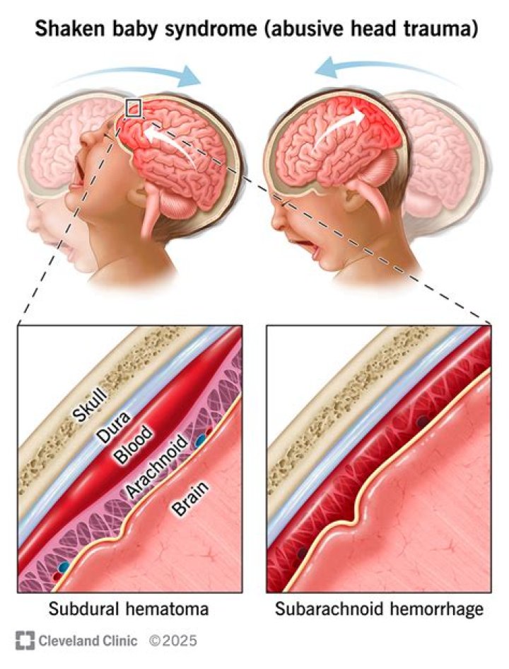 Spasmus nutans is a disorder affecting infants and young children. It involves rapid, uncontrolled eye movements, head bobbing, and sometimes, holding the neck in an abnormal position.What is the most common cause of shaken baby syndrome?