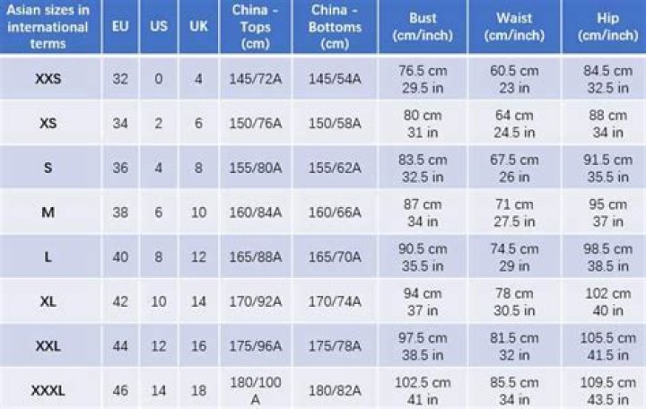 Chinese clothing sizes are sometimes labeled with two numbers, e.g., 165/80. In this case, the first number represents the height of the person in centimeters. The second number represents the circumference of the person's chest, again in centimeters.What are Chinese sizes in clothes?
