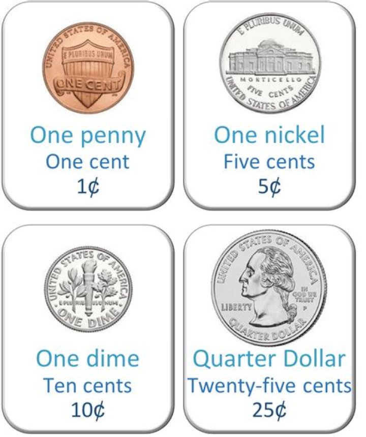 For example, 100 cents equals 1 dollar.What's the value of 5 cents?