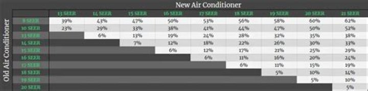 A 16 SEER unit is about 13% more efficient than a 14 SEER. For every $100 you spend to cool your home with a 14 SEER, you could save $13 on your monthly bill by upgrading to the 16 SEER unit. But just like gas mileage, your ability to meet this maximum efficiency and savings depends on a lot of other factors.How much more efficient is a 20 SEER vs 14 SEER?