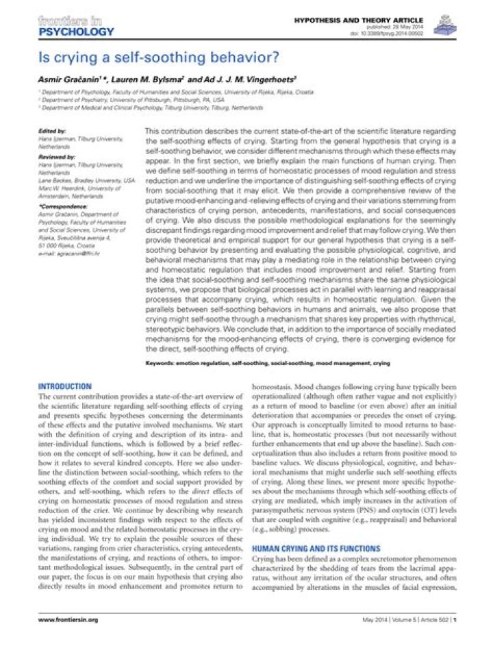 Crying may be one of your best mechanisms to self-soothe. Researchers have found that crying activates the parasympathetic nervous system (PNS). The PNS helps your body rest and digest.What are self-soothing behaviors?