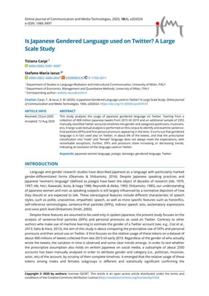 The Japanese language has some words and some grammatical constructions associated with men or boys, while others are associated with women or girls. Such differences are sometimes called "gendered language".
