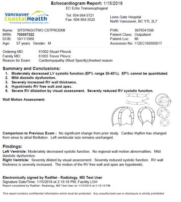 A normal left ventricular ejection fraction (LVEF) is 53% to 70%.How do you read an echo report?