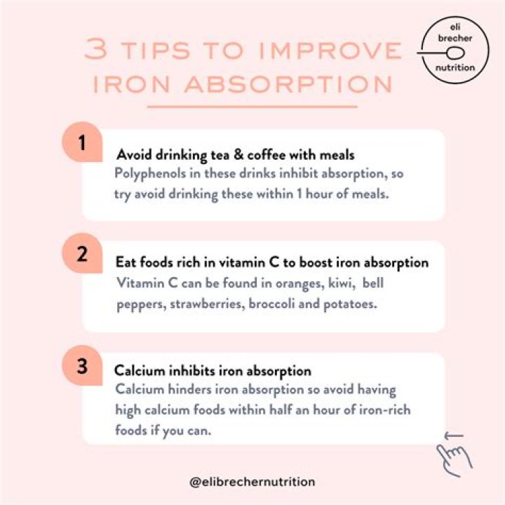 Absorption of iron from the gut is reduced by food, tea and milk, so these should be avoided for one hour before and after taking the iron supplement. Some medications also affect absorption of iron from the gut, particularly medications which reduce stomach acid (antacids) and certain antibiotics.Does chocolate inhibit iron absorption?