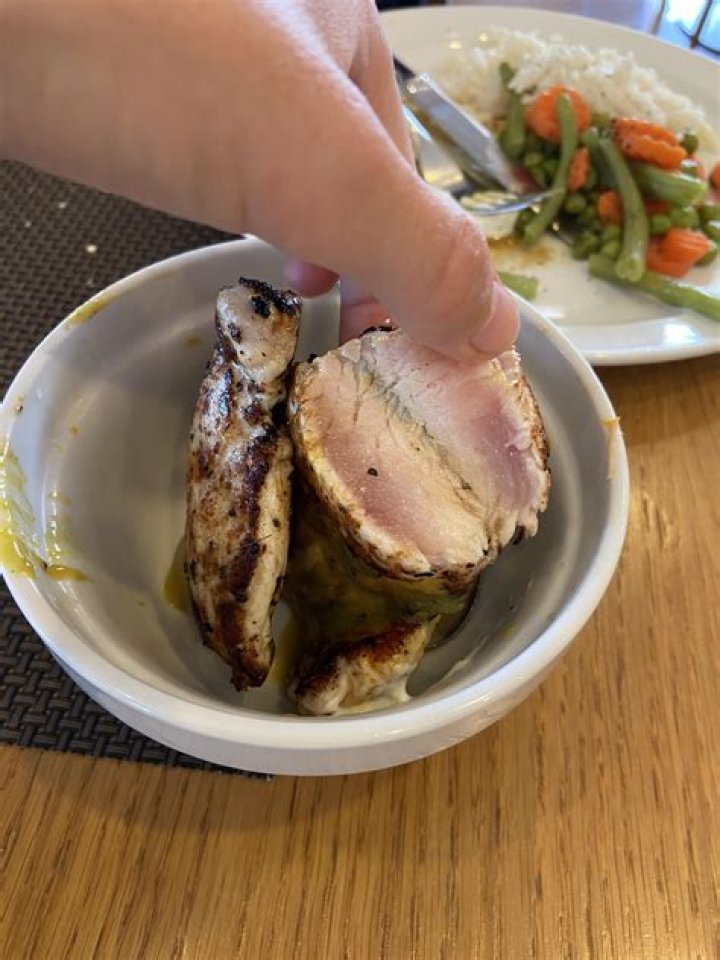 The USDA says that as long as all parts of the chicken have reached a minimum internal temperature of 165°, it is safe to eat. Color does not indicate doneness. The USDA further explains that even fully cooked poultry can sometimes show a pinkish tinge in the meat and juices.What happens when u eat pink chicken?