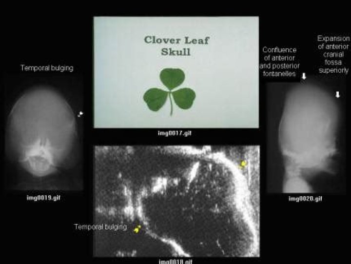Cloverleaf skull, also known as kleeblattschädel syndrome or deformity, refers to a type of severe craniosynostosis which gives the skull a cloverleaf shape. It is very rare, with less than 130 case reports globally.What causes cloverleaf syndrome?