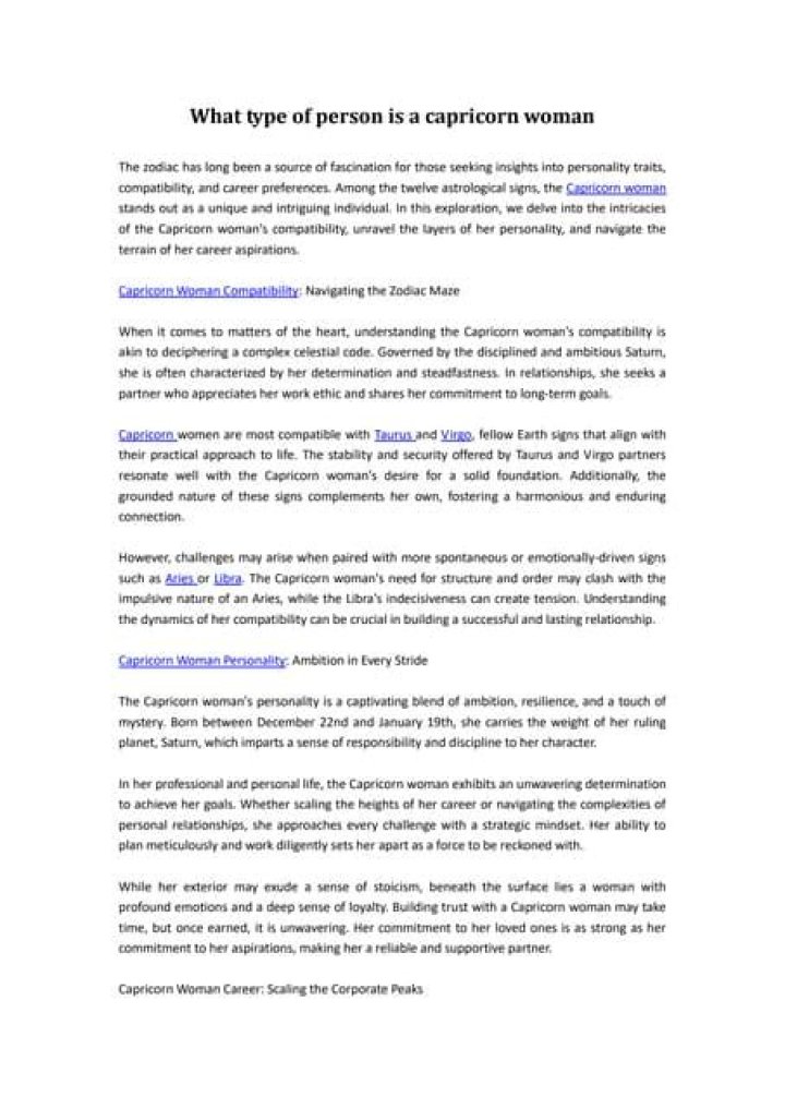 Capricorn women are also incredibly loyal to their friends, family, and romantic partners. They value kindness and thoughtfulness, and are truly conscientious of the needs of others. This zodiac sign is reliable by nature, and will always defend those they care for.What is attractive about Capricorn woman?