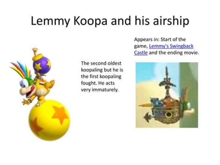 Lemmy Koopa: He is one the craziest and is the smallest of the koopalings. Morton Koopa: He is the dumbest and strongest of the koopalings.
