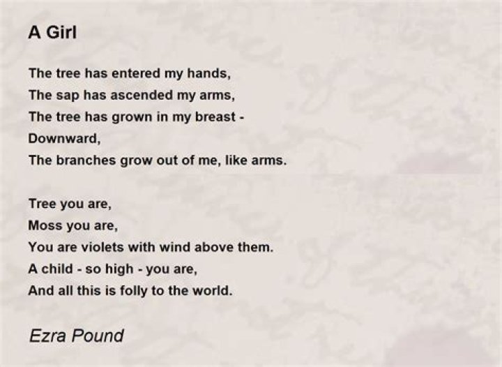 , the great expatriate American poet and critic, used his iconic Imagism to write the poem 'A girl' where he used the mythical characters of Apollo and Daphne to showcase the creative imaginations of a girl from two different perspectives; an older child and an adult, where the girl transforms ...What is the poem a girl about?