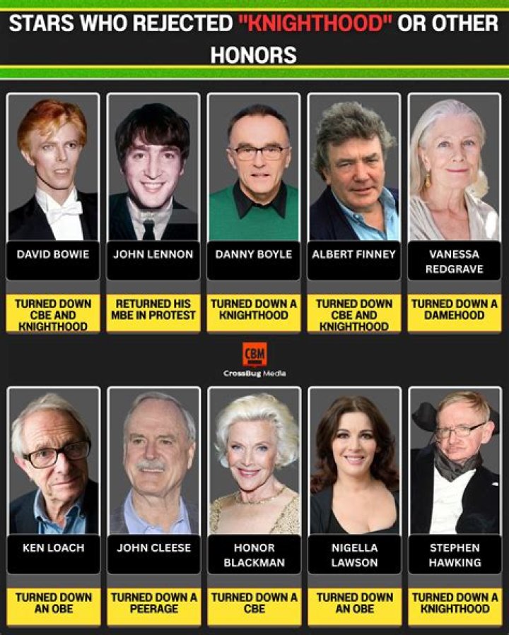 Knighthoods, CBEs, OBEs and MBEs: 11 people who have said no over the years